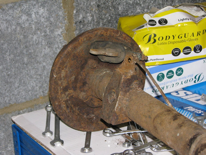 In fairness not in bad condition for it's age but still in need of work. Th erear trailing arm bushes are shot so the rear axle is out (you can see photos if you follow the link for Mandy). Checked the oil - none there - and cam belt needs doing but apart from that and a bit of rust not bad.